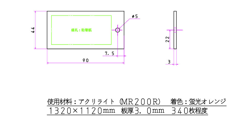 そこで採用したのが、やはりアクリルでした。 シールを何度も貼り替えられるように、通常のアクリルよりも傷に強い「アクリライトMR」という特殊な高硬度のアクリル素材を見つけ出し、自分で図面を引いて、専門の業者さんに発注をかけました。